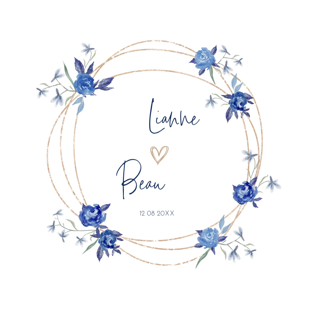 Trouwkaart met kringen en blauwe waterverf bloemen