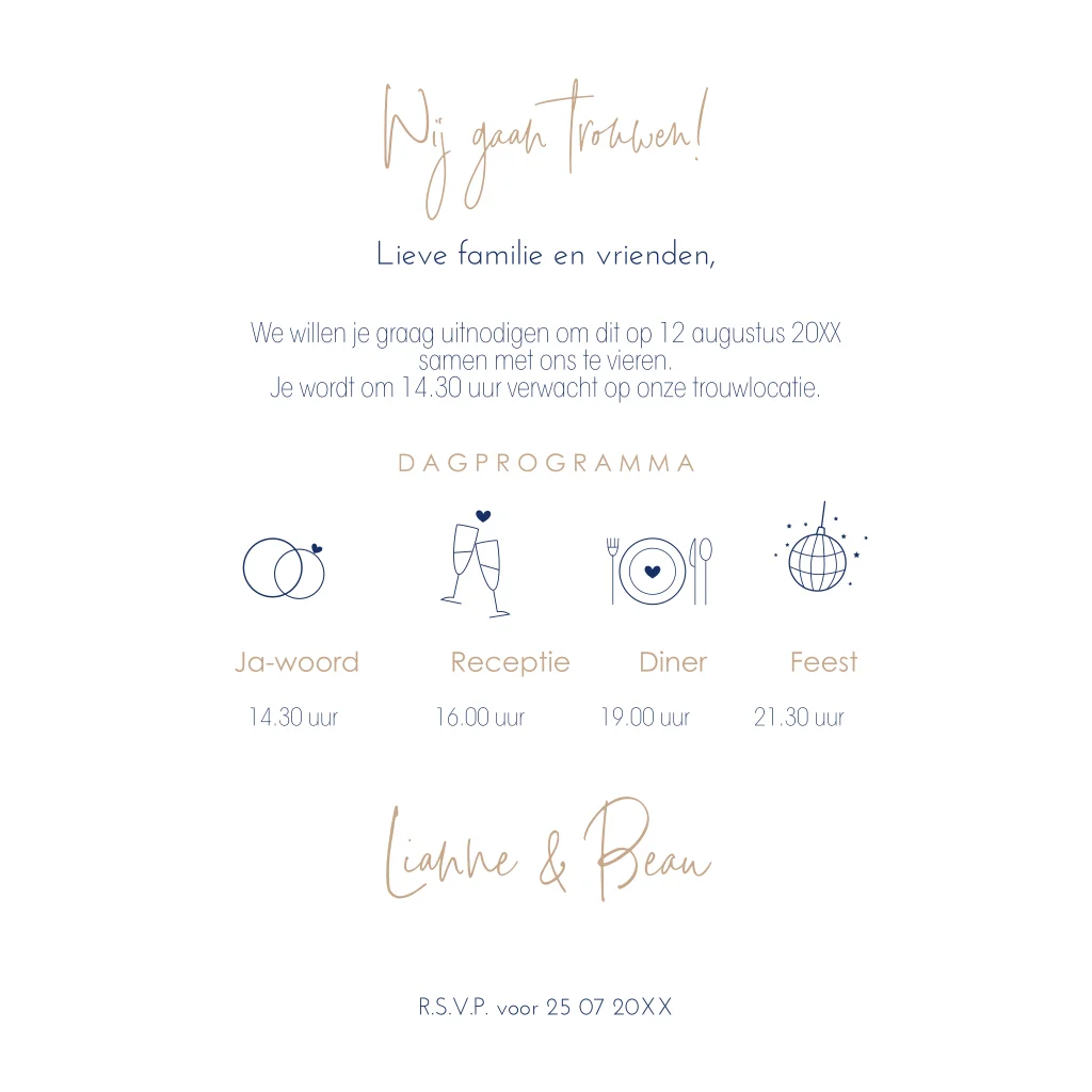 We do! Gave trouwkaart met waterverf bloemen en takjes op goud koper kleurige cirkels. Van deze kaart is een hele trouwhuisstijl beschikbaar