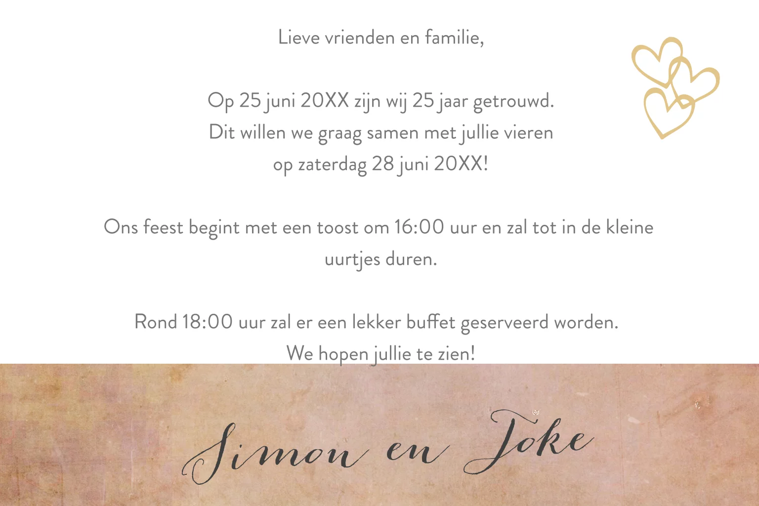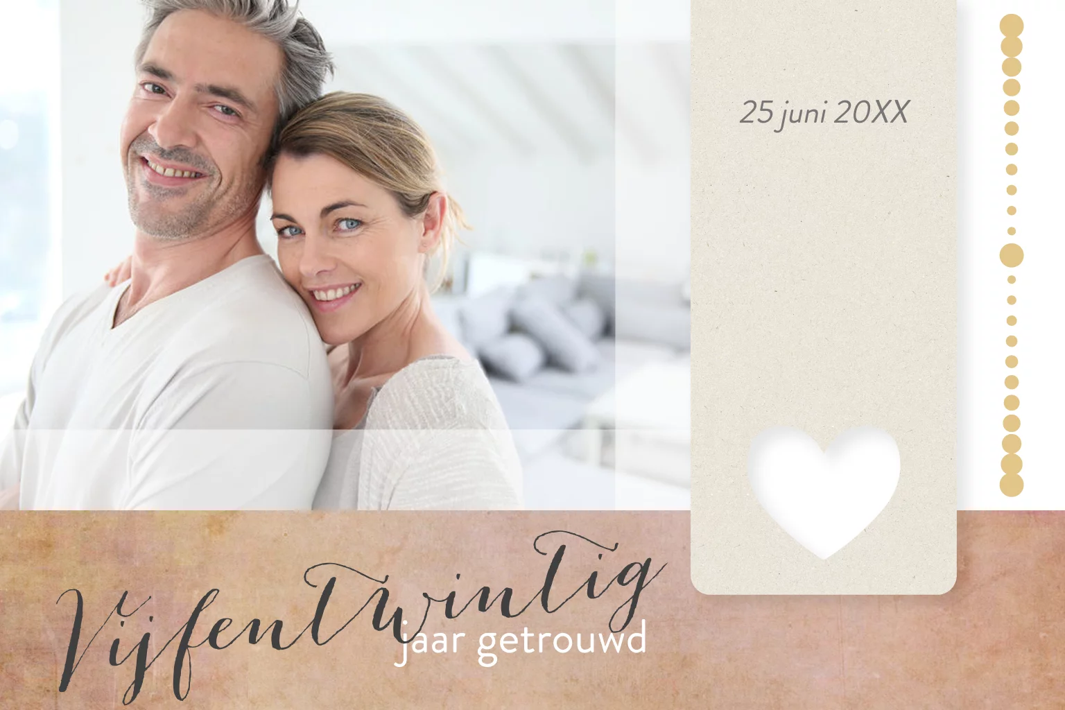 Stijlvolle jubileumkaart die je zelf kunt personaliseren. Verander zelf het jaartal, de foto en de teksten en het lettertype