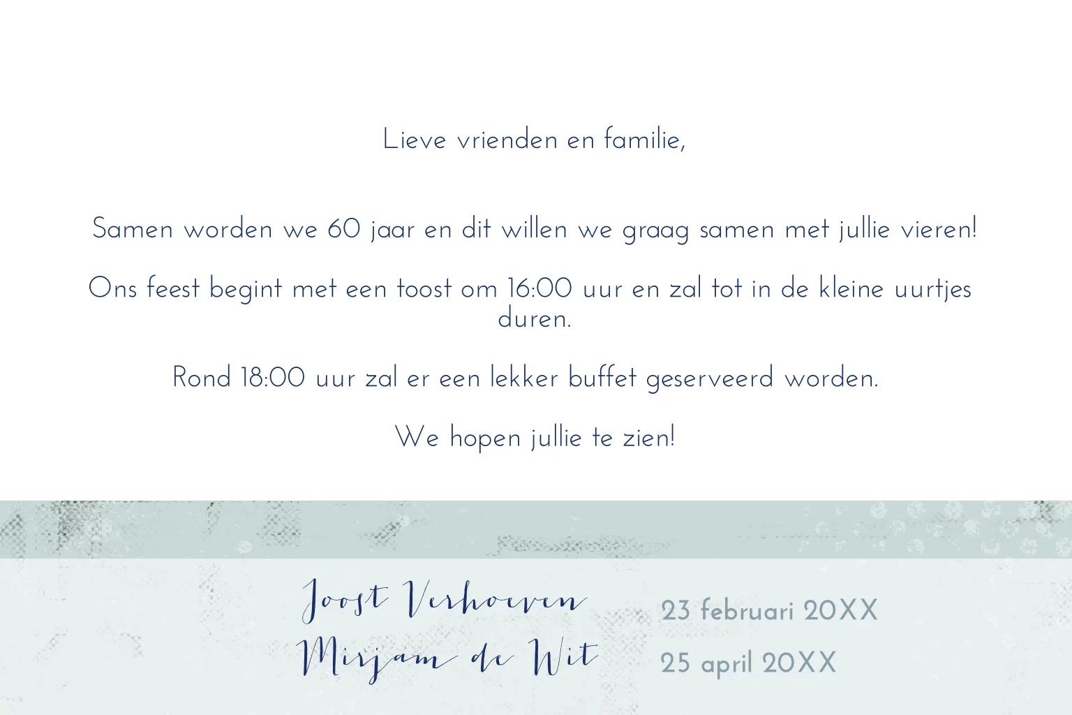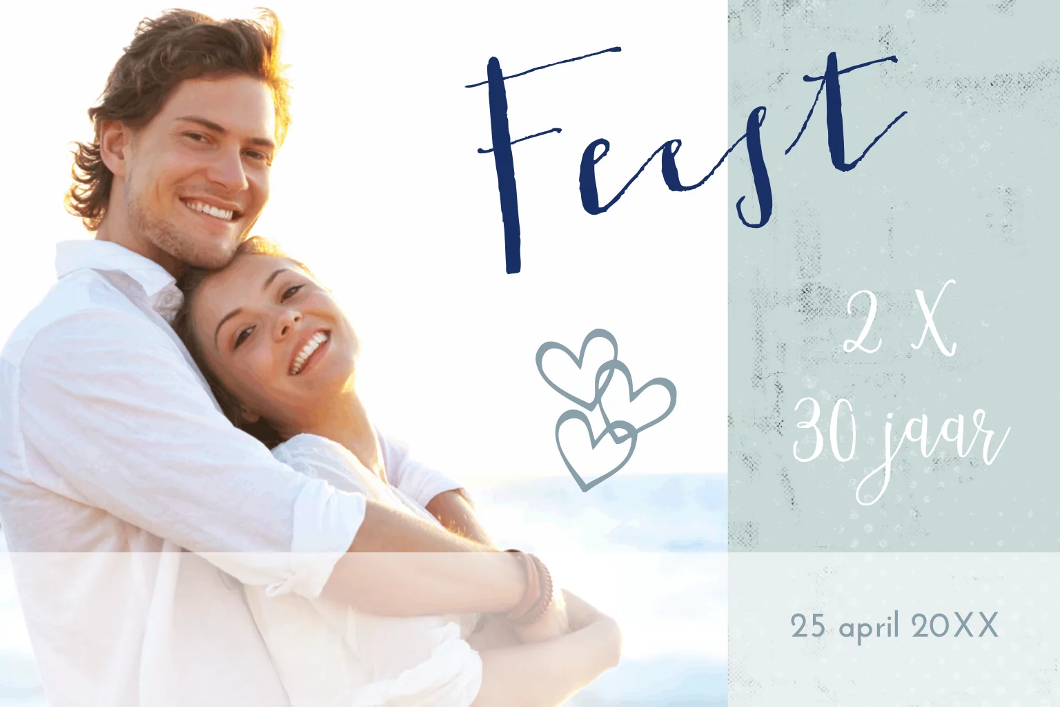 Mooie uitnodiging voor een verjaardag of jubileum met foto. Personaliseer deze kaart door zelf de leeftijd, teksten en foto aan te passen.