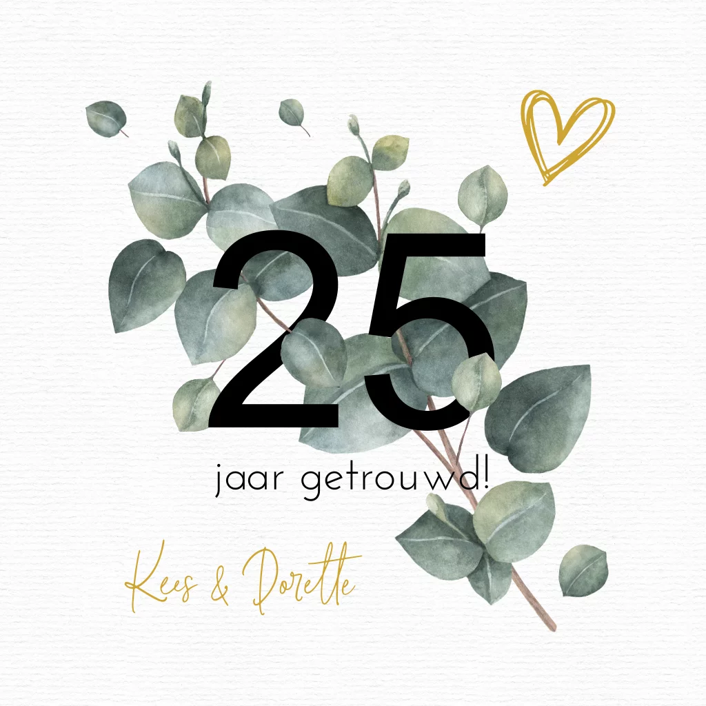 Jubileumkaart 25 jaar getrouwd met eucalyptus