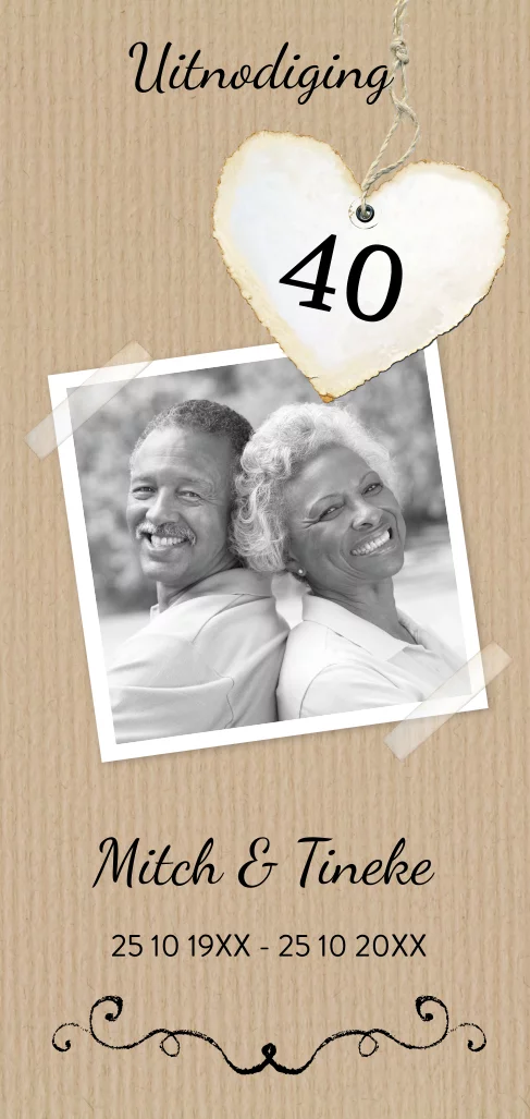 Leuke staande uitnodiging voor een huwelijksjubileum. Verander het cijfer eenvoudig en plaats je eigen foto.