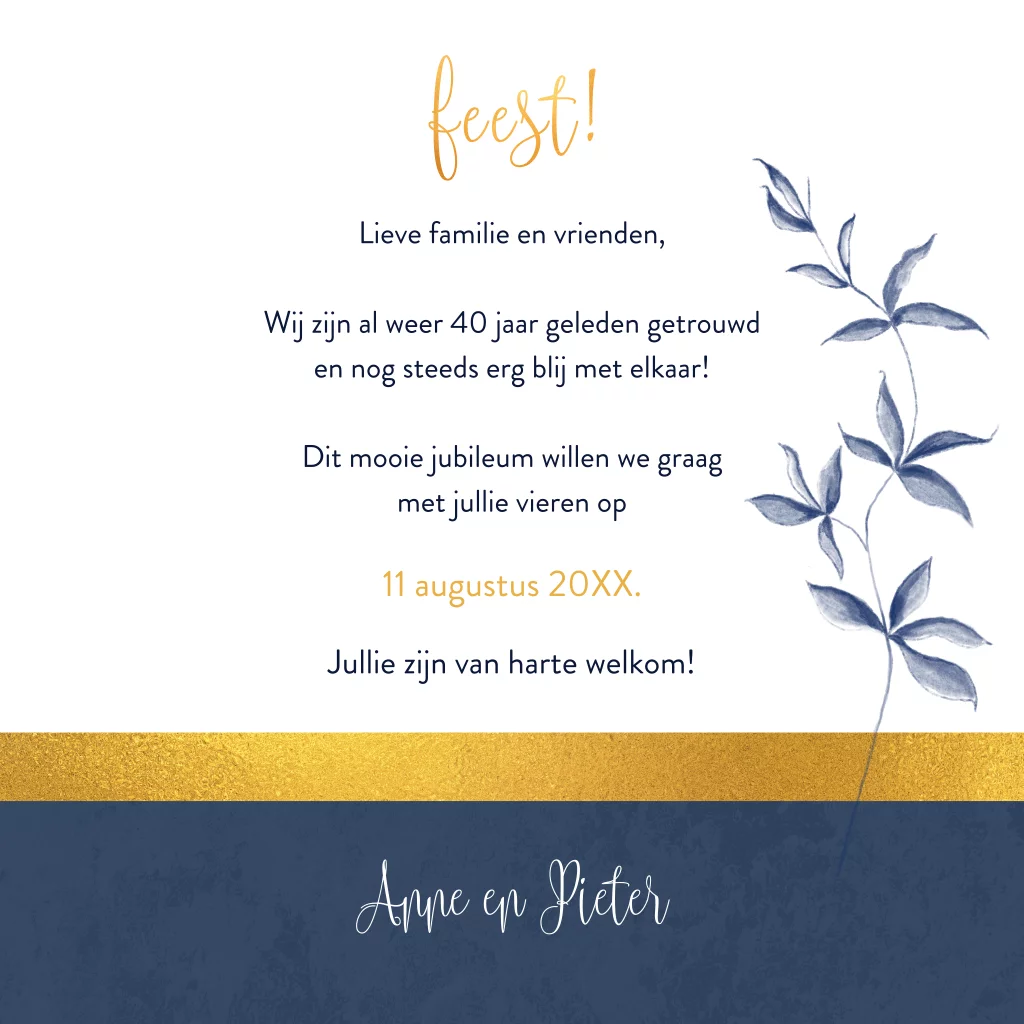 Mooie jubileumkaart met een foto een takje, goud kleurige hartjes, elementen en teksten. Pas zelf de kleur of het cijfer aan naar 12,5 of 25 jaar etc.