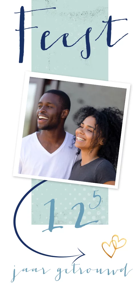 Staande jubileumkaart voor een 12,5 jarig huwelijk, met een vintage strook en een foto op de voorzijde. Personaliseer deze kaart door het jaartal en de foto aan te passen naar eigen wens.