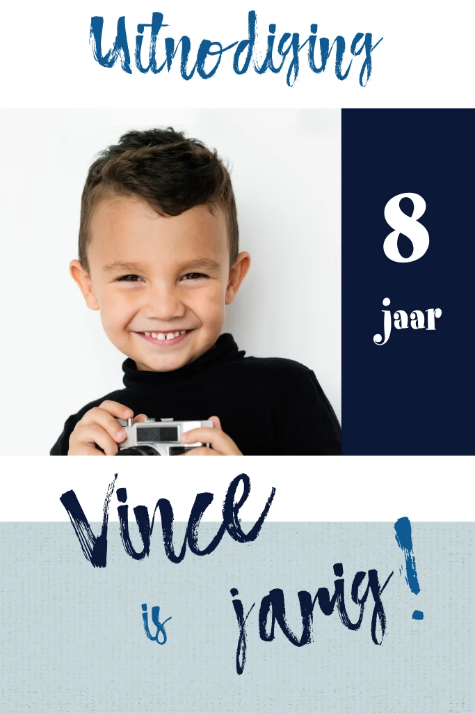 Hoera, gebruik deze uitnodigingskaart voor het feestje van jouw kindje en personaliseer deze kaart eenvoudig door een eigen foto te gebruiken