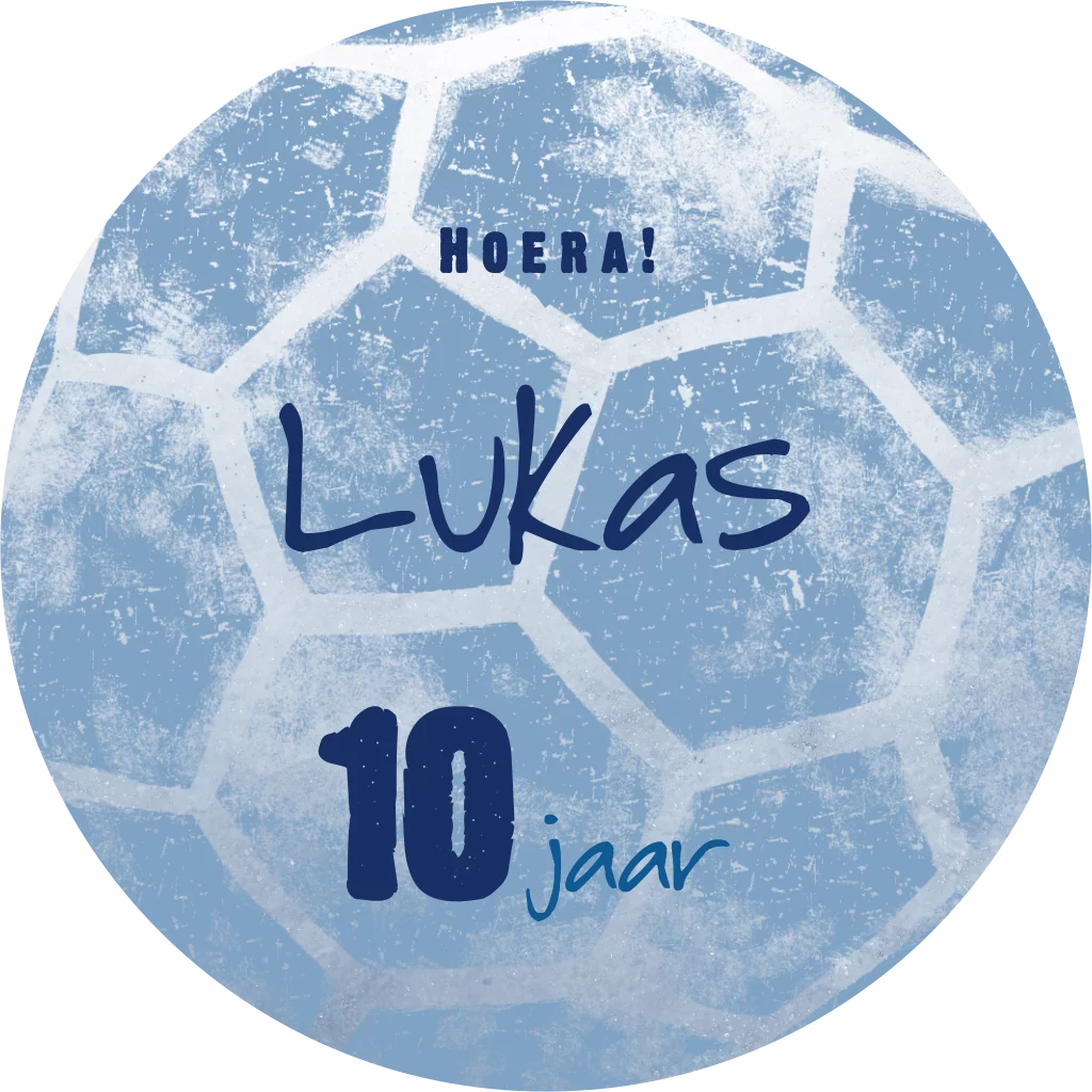 Stoere verjaardagsfeest uitnodigingskaart in een ronde vorm met illustratie van een voetbal op de achtergrond. De kleuren, teksten en het lettertype kun je zelf aanpassen.