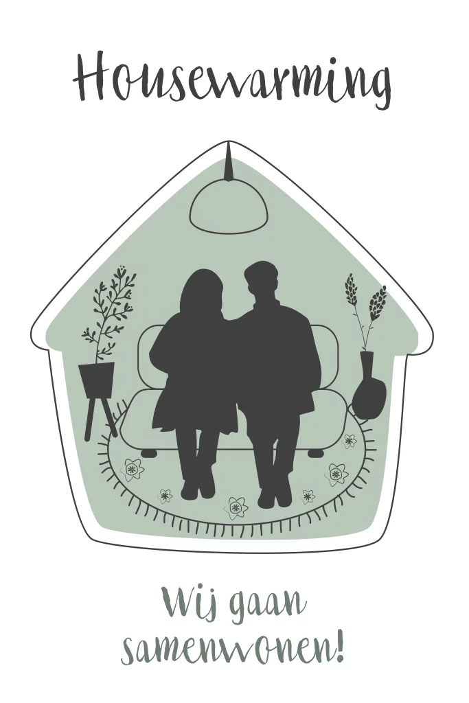 Enkele vehuiskaart, wij gaan samenwonen met silhouet