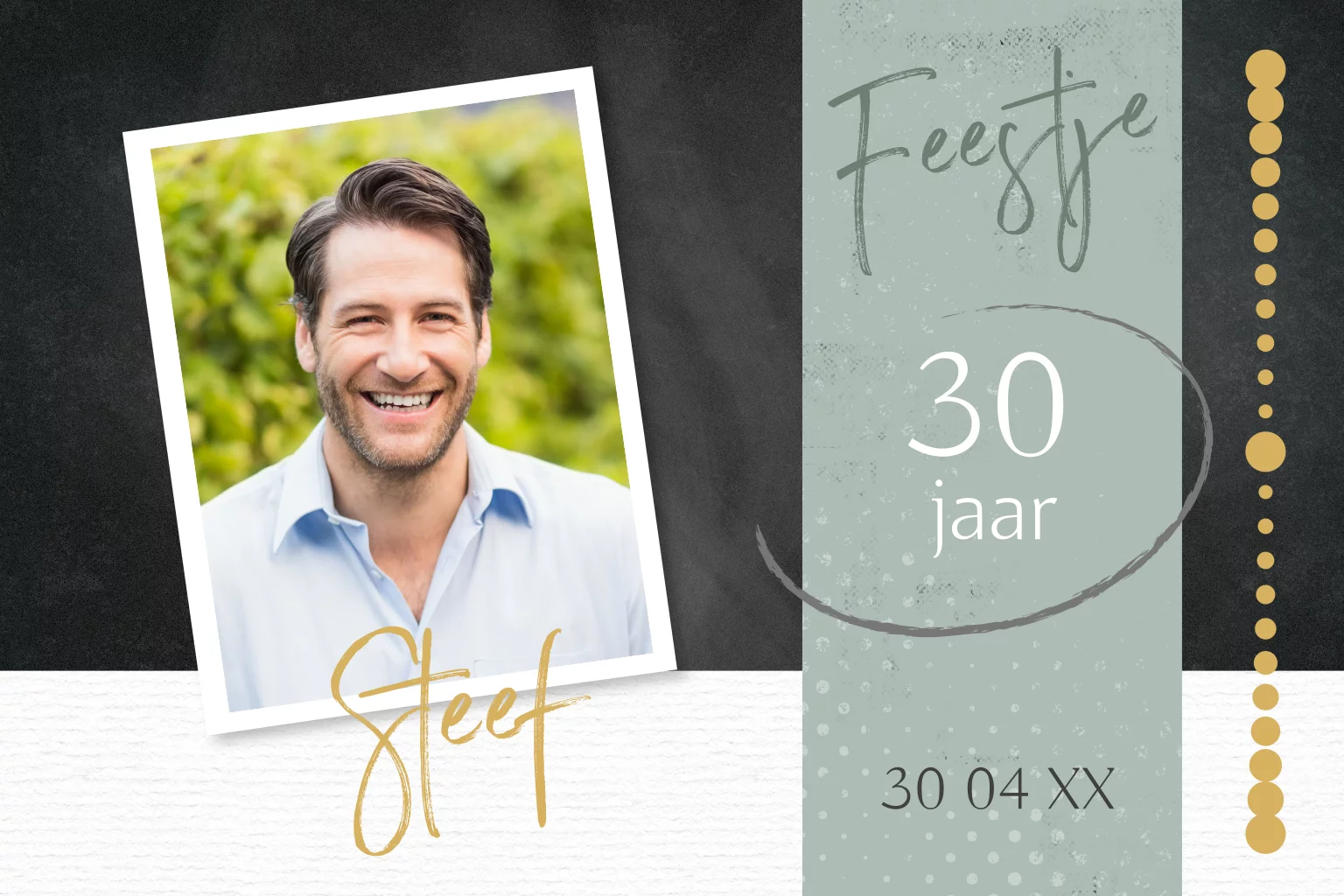 Hippe uitnodiging met jouw eigen foto voor een verjaardag. Personaliseer deze kaart naar eigen wens door foto, kleuren, tekst en lettertype eenvoudig te veranderen.