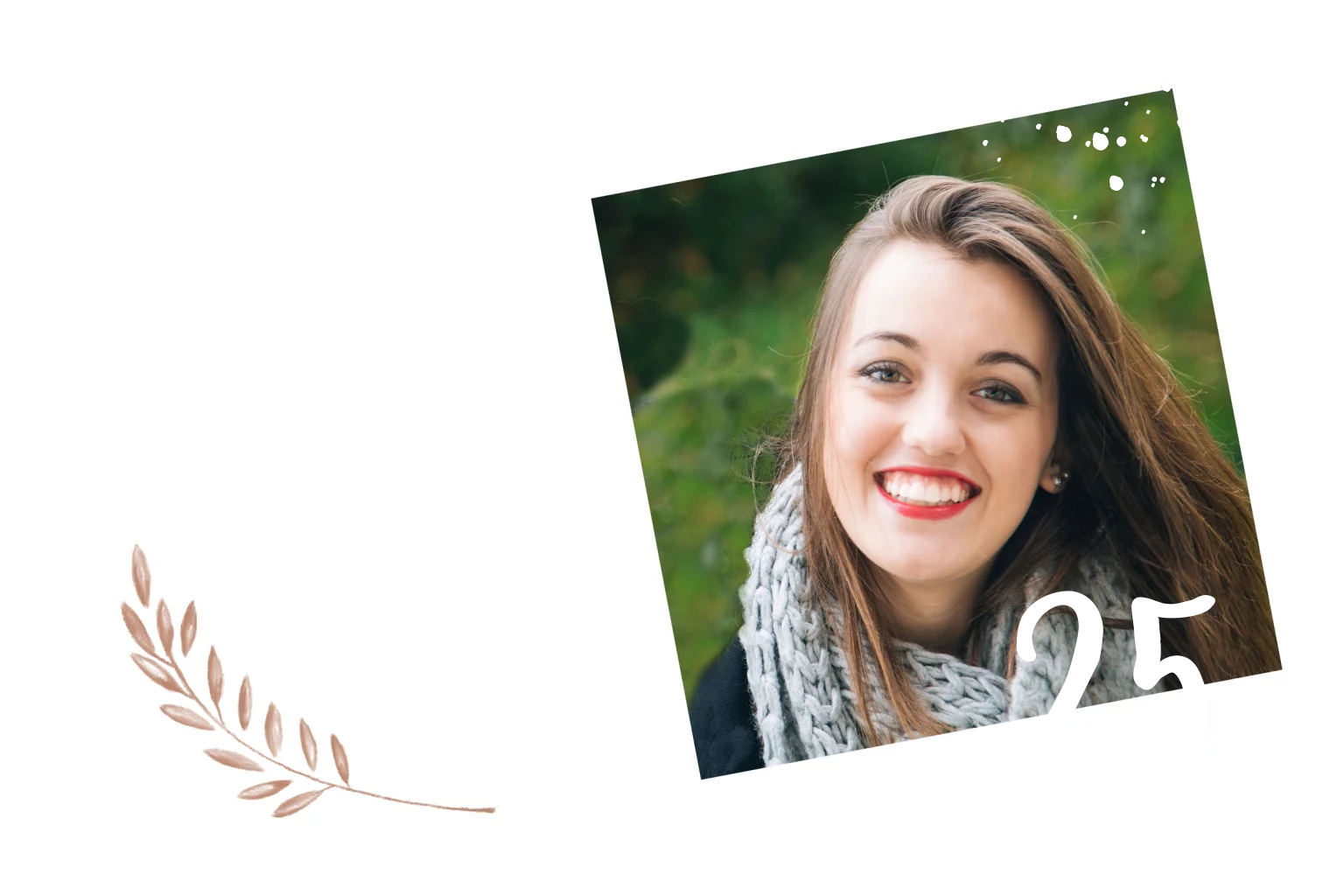Stijlvolle liggende wenskaart met goudfolie, een eigen foto en handgetekende blaadjes Meer geschilderde veldbloemen vind je in de beeldbank.
